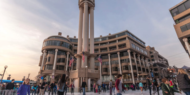 At the Washington Harbour in Georgetown, the fountain transforms into a prime skating experience enhanced by dozens of twinkling white snowflakes lighting up the ice. And there are two special events each week. Saturday mornings it is Cartoon Skate Saturdays. A fun experience for the kids. And Saturday nights come alive with Rock the Rink with hot musical favorites. The surrounding restaurants make it easy to grab a bite making it perfect for dates.
